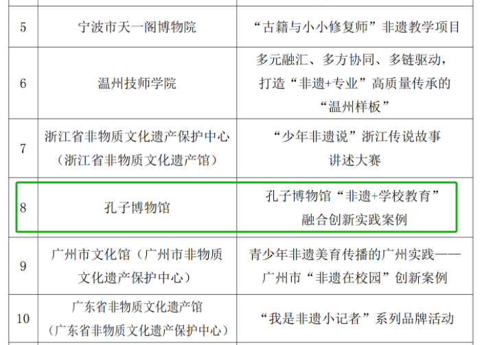 近日,文化和旅游部民族民间文艺发展中心公布“2025非遗传播创新案例”评选结果,孔子博物馆申报的《“非遗+学校教育”融合创新实践案例》成功入选。